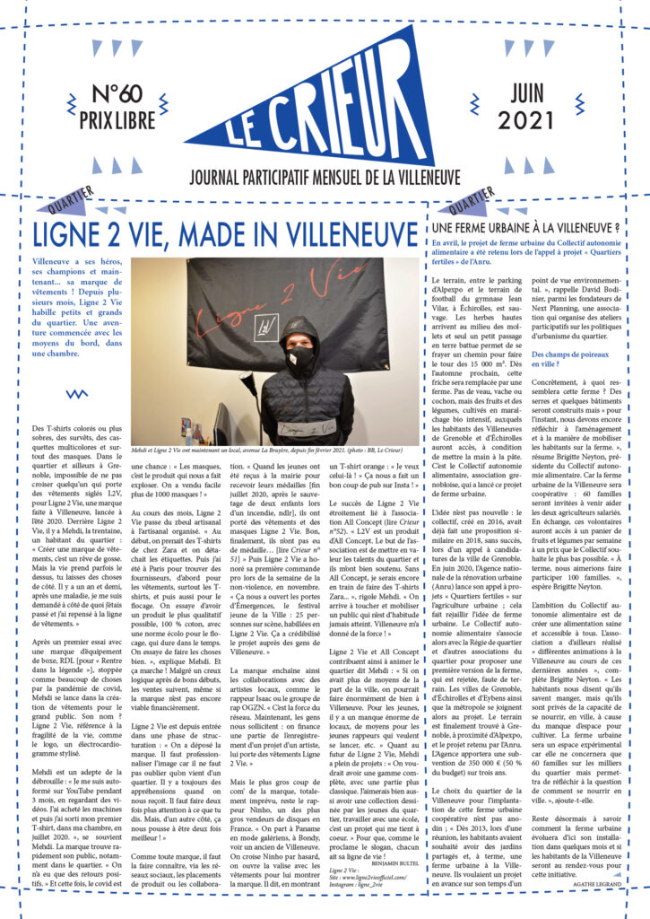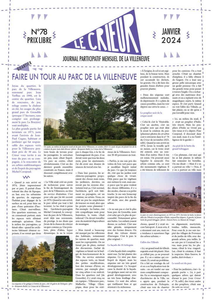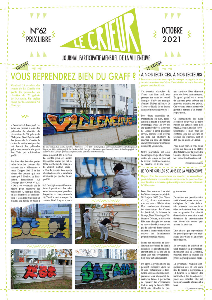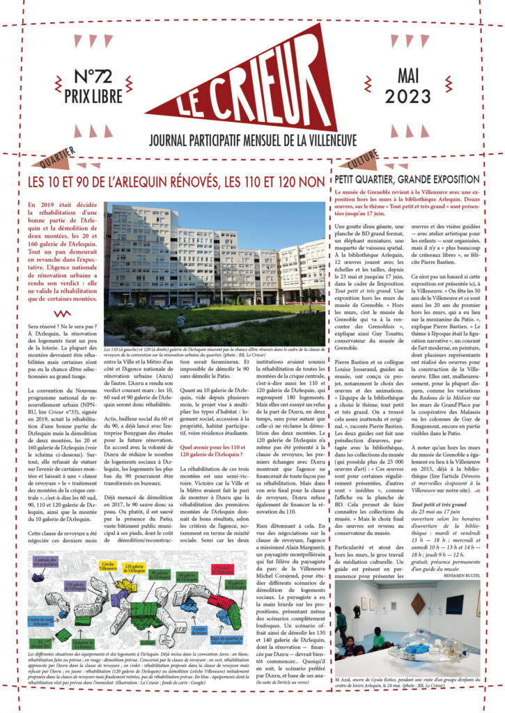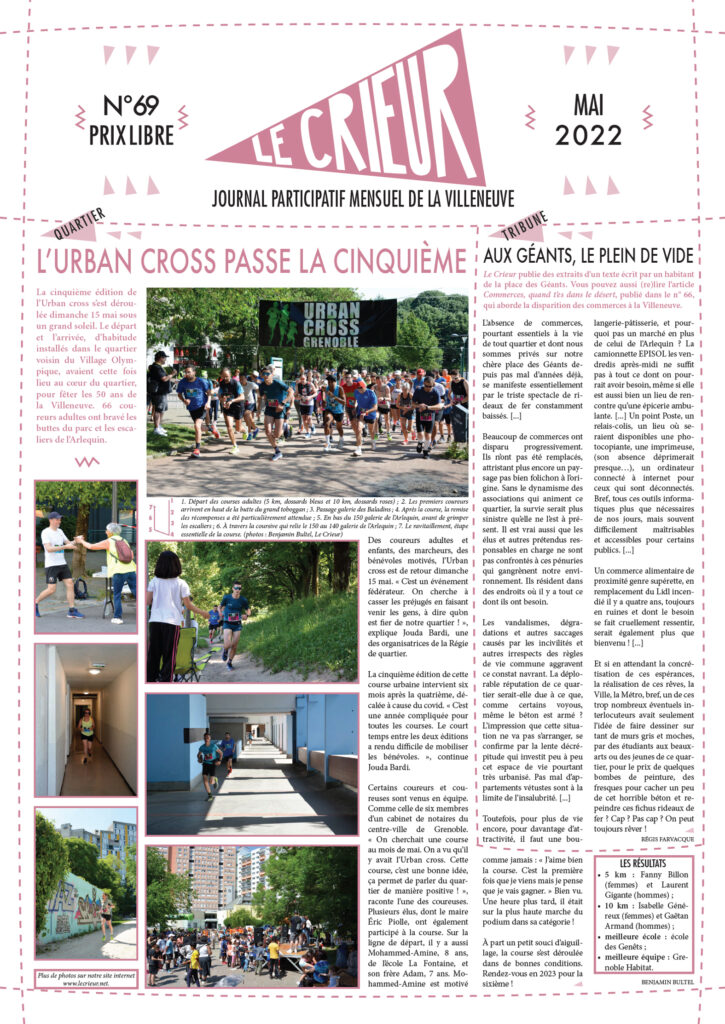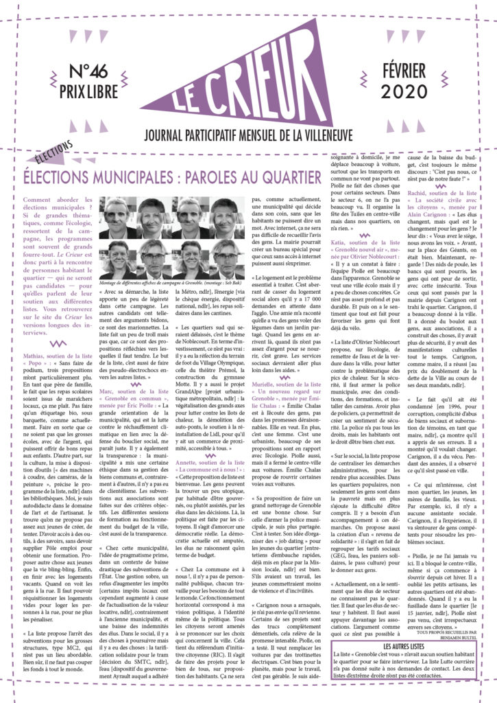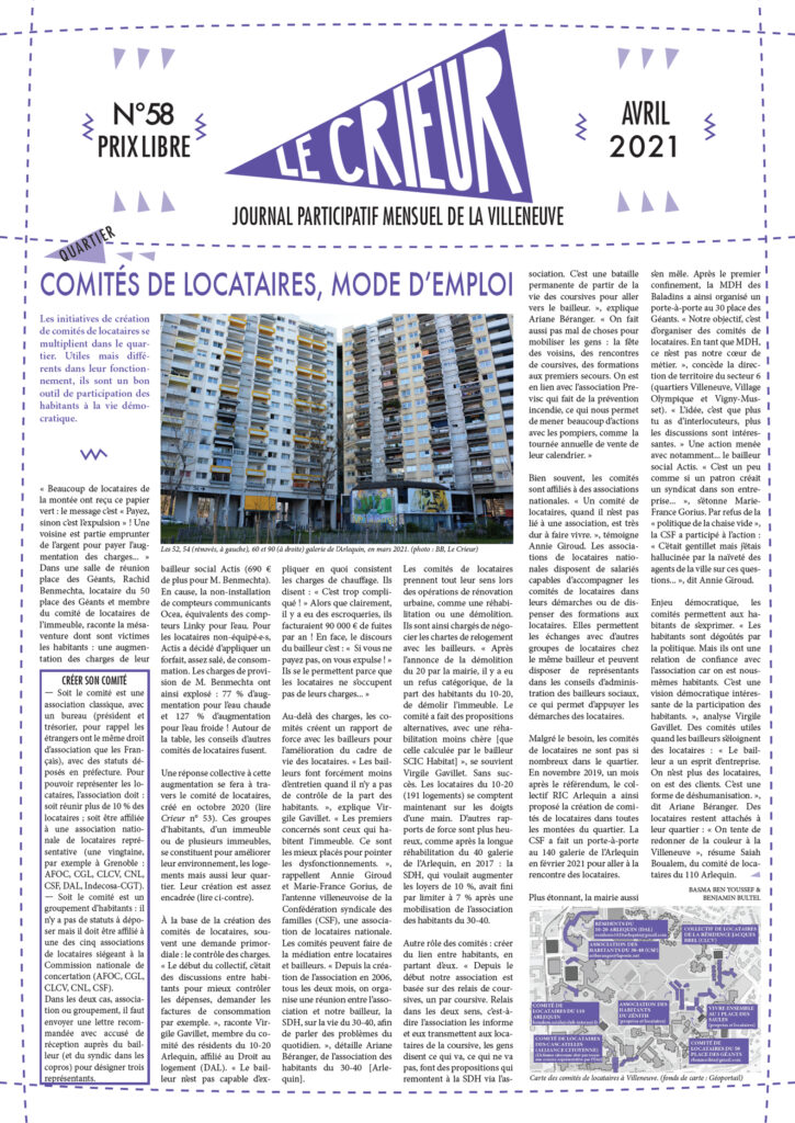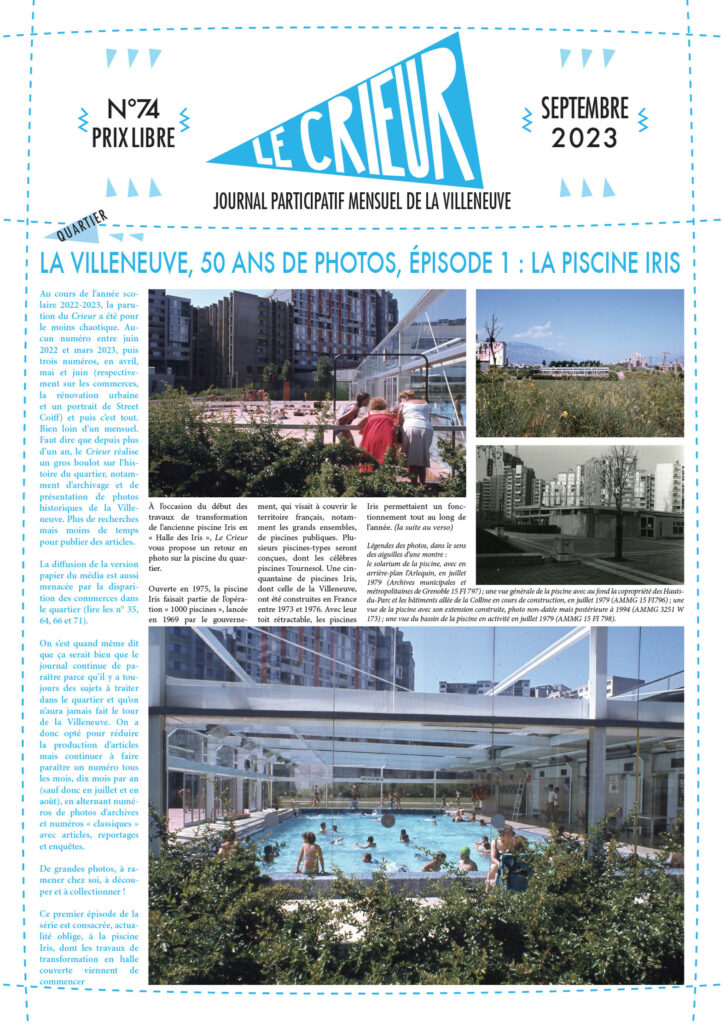 La version mensuelle du Crieur de la Villeneuve a été publiée de janvier 2015 à février 2026. Elle était disponible tous les mois (sauf en juillet et en août) dans le quartier.