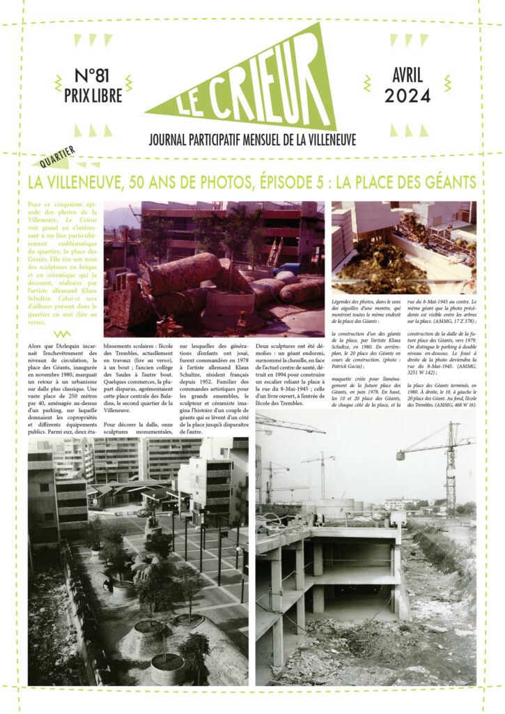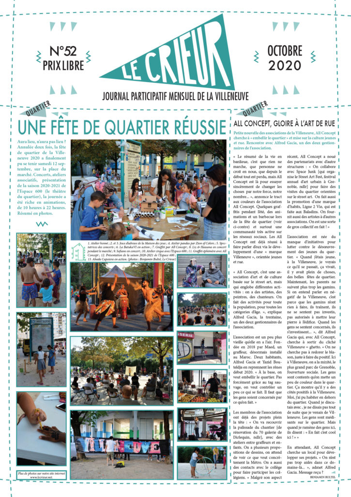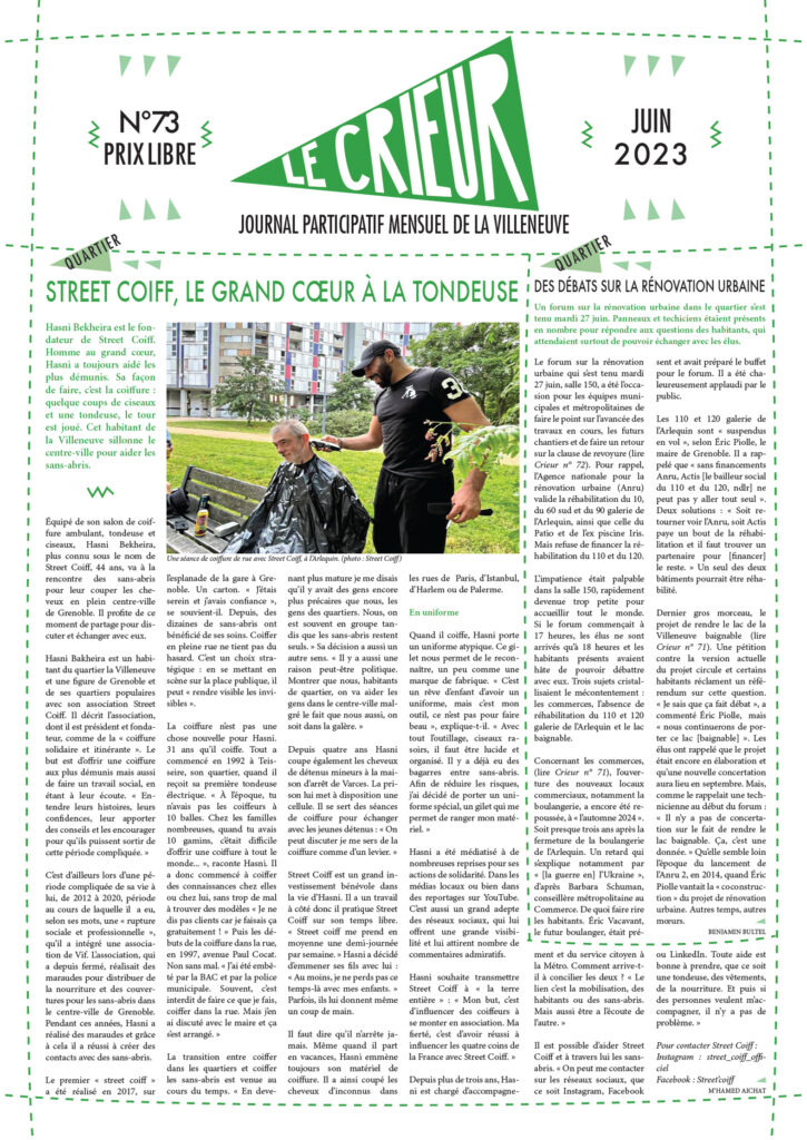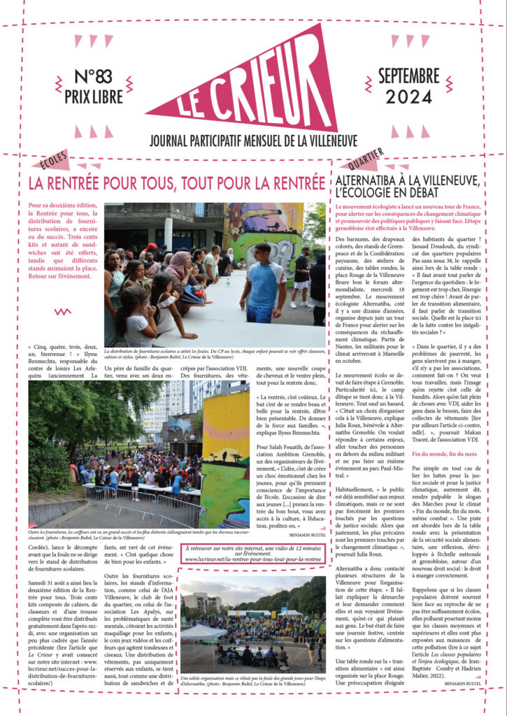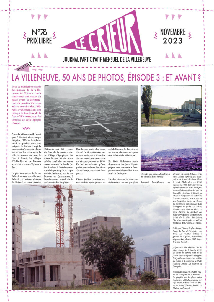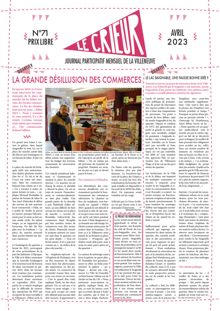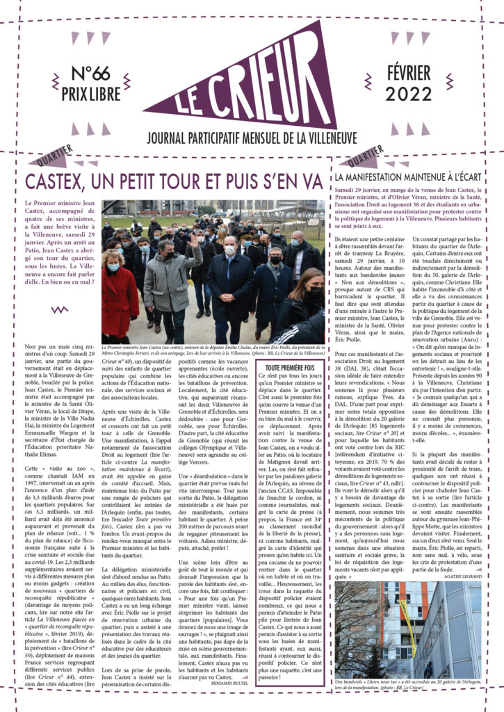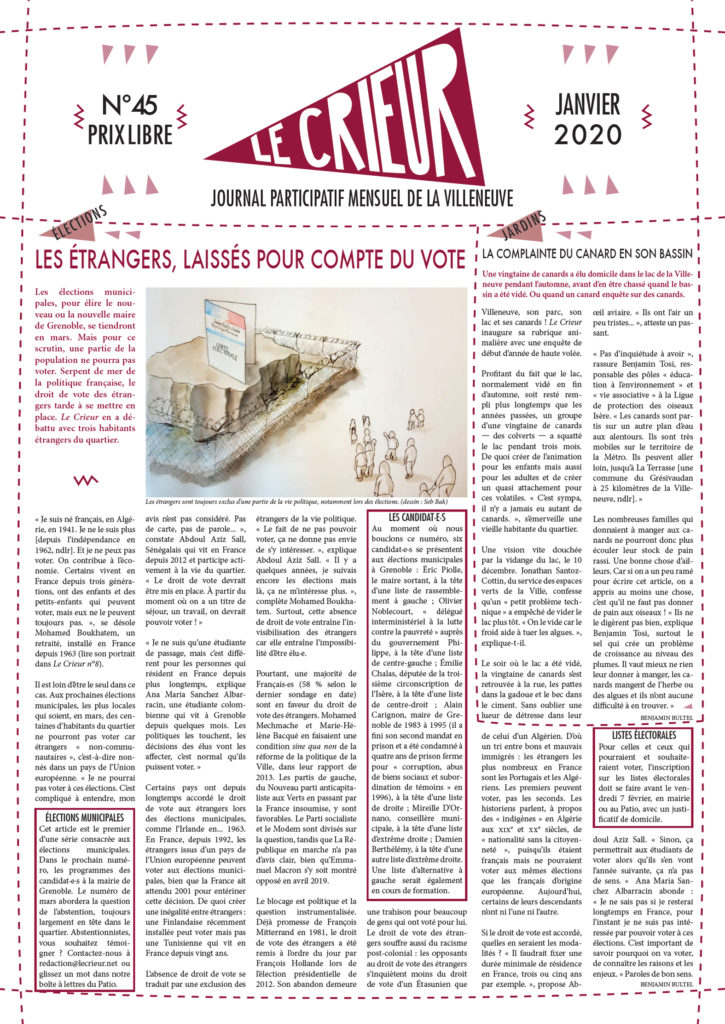 La version mensuelle du Crieur de la Villeneuve a été publiée de janvier 2015 à février 2026. Elle était disponible tous les mois (sauf en juillet et en août) dans le quartier.