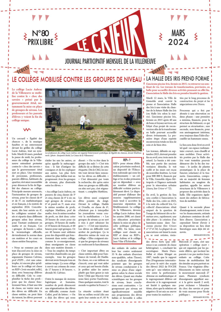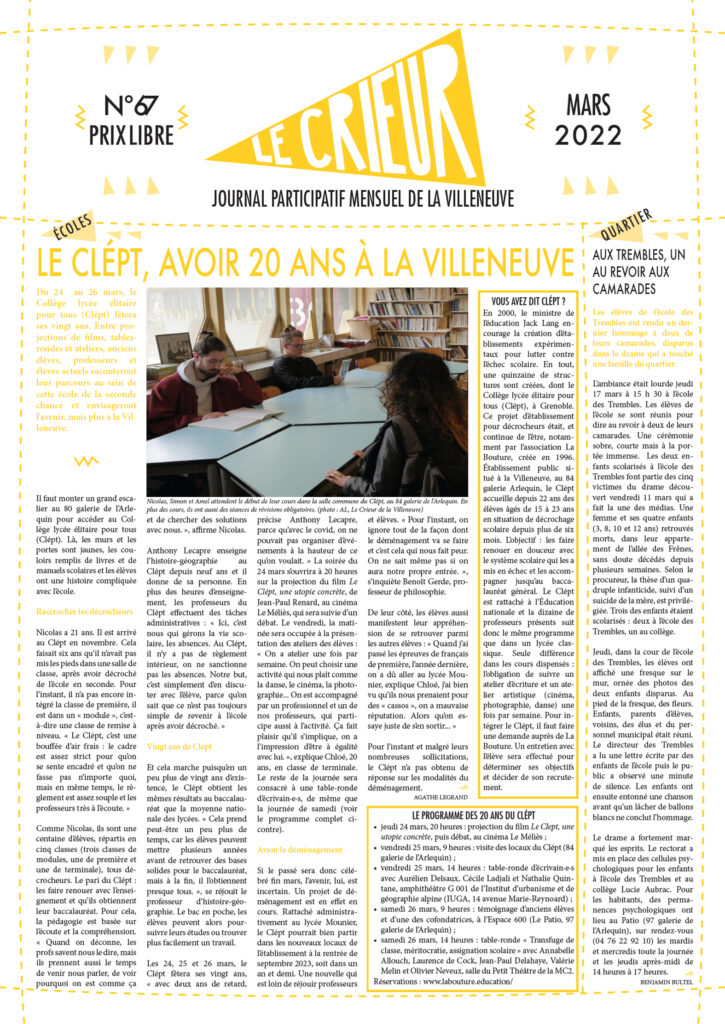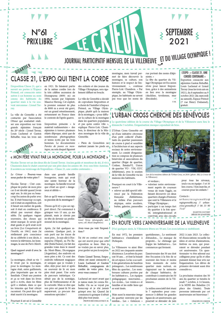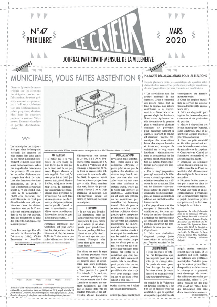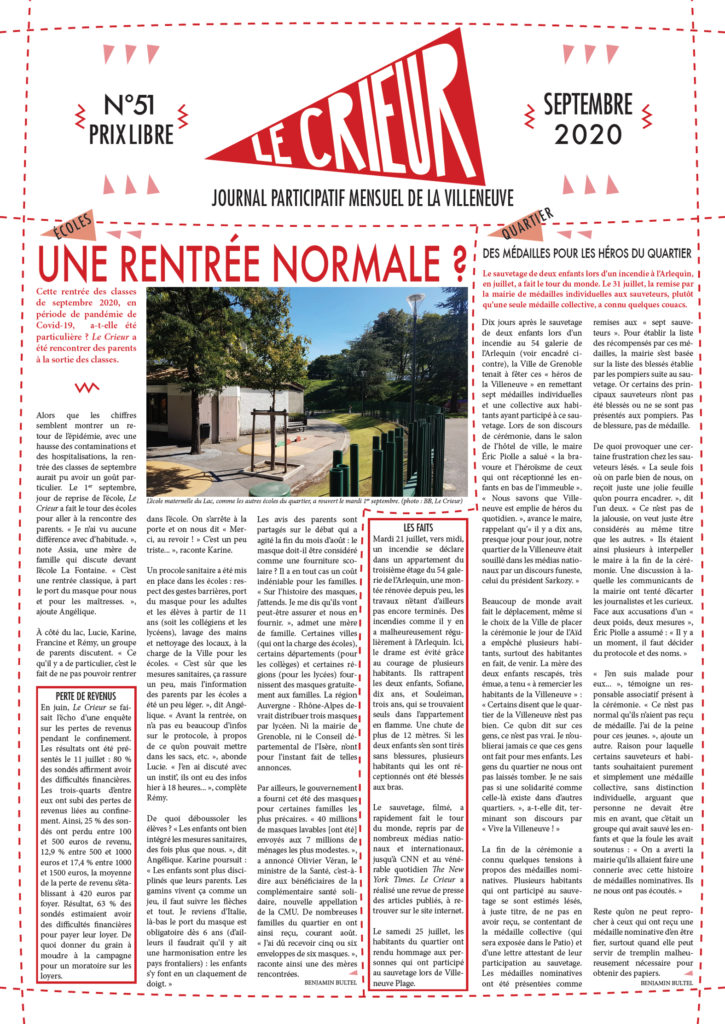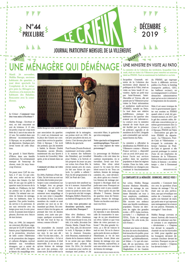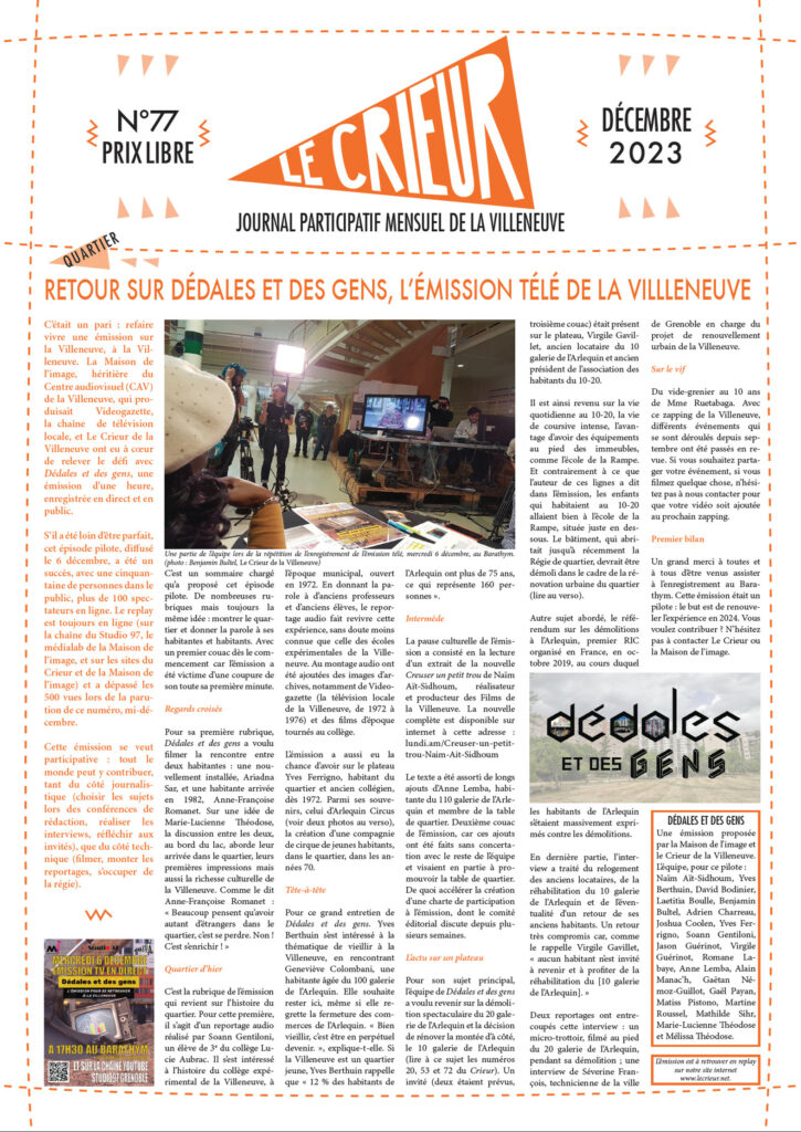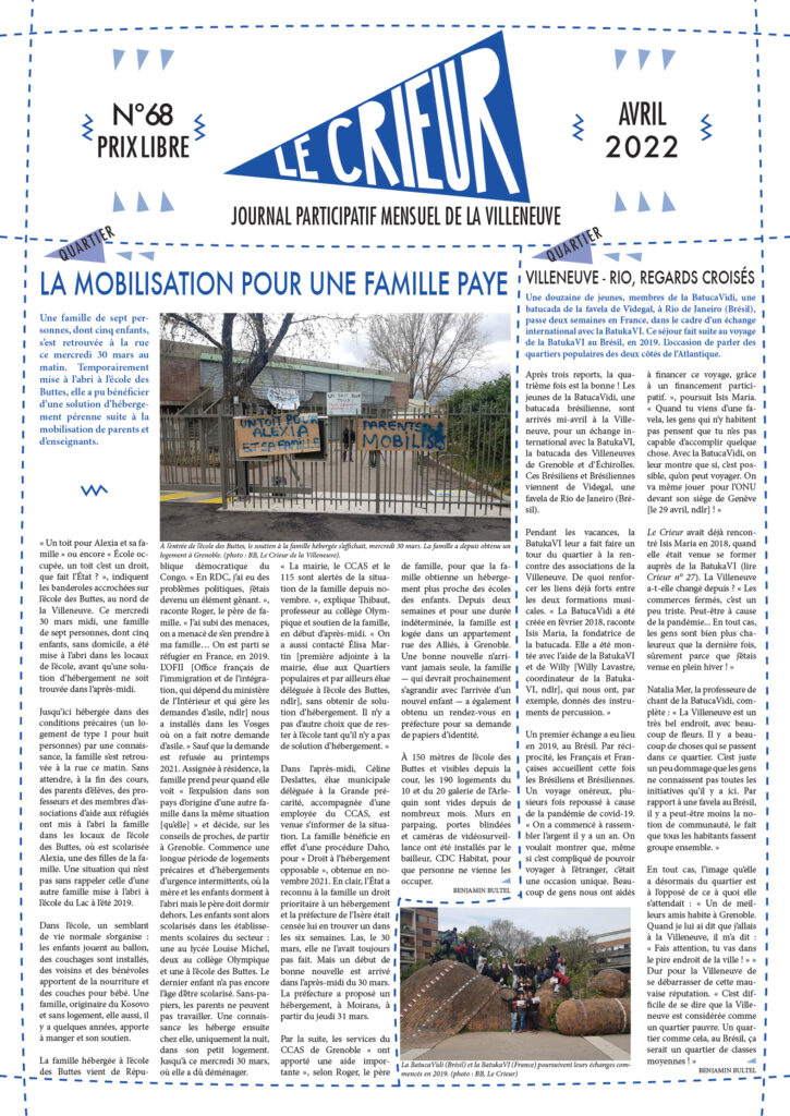 La version mensuelle du Crieur de la Villeneuve a été publiée de janvier 2015 à février 2026. Elle était disponible tous les mois (sauf en juillet et en août) dans le quartier.