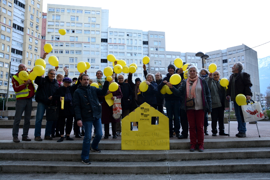 [two_third]Le RIC — plutôt un référendum local (voir encadré ci-contre) — permettrait aux Villeneuvois.es d’exprimer leur avis sur les démolitions de logements. Le collectif propose qu’en cas de refus des destructions, celui-ci soit intégré dans un avenant à la convention Anru pour ne pas mettre en péril le reste du projet de rénovation du quartier, notamment la réhabilitation des copros (80, 100 et du 130 au 170 galerie de l’Arlequin). Ce n’est pas la première fois que le collectif réclame une consultation. La deuxième pétition du collectif, lancée en 2018 pour être dans les clous du dispositif d’interpellation citoyenne mis en place par la municipalité, aurait dû conduire à une votation citoyenne. Mais le dispositif a été annulé par le tribunal administratif de Grenoble juste avant. Le résultat aurait été, de toute manière, couru d’avance, le seuil pour imposer une décision à la mairie était fixé à 20 000 voix (environ 25 % des électeurs grenoblois).[/two_third][one_third_last]Référendum local