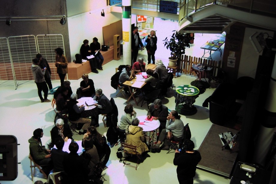 Grand succès pour cet atelier qui mêle habitants et professionnels de la culture, comme le théâtre l’Espace 600 ou la Maison de l’image. Après la diffusion d’un film d’habitant amenant à réfléchir sur les pratiques et l’impact des politiques culturelles (voir le film ici), la quarantaine de participants discute des actions à mener en faveur d’une « démocratie culturelle ».